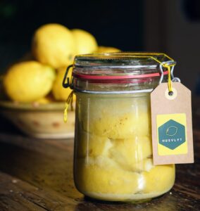 Husvlyt maakt ingelegde citroen hemels met liefde, veel geduld en alleen de beste ingrediënten: biologische, onbehandelde citroenen en zeezout. De rijping duurt een half jaar.